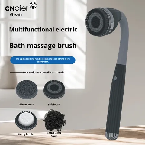Cneier Escova de banho elétrica de silicone para o corpo, escova para massagem e banho, alça longa, para limpeza de costas, elétrica